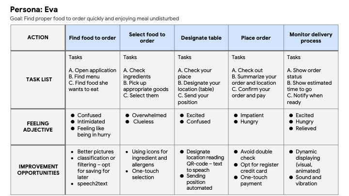 Mapping Eva’s user journey revealed how helpful it would be for users to use food menu mobile app.